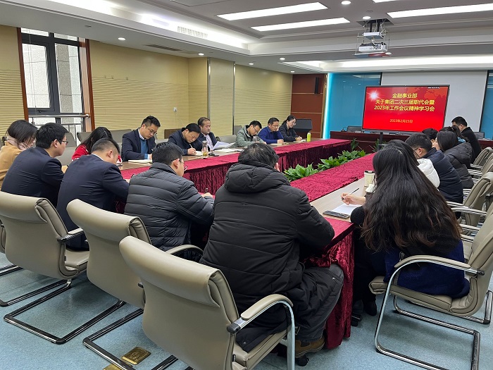 2月23日下午,金融事業部召開會議,傳達學習建工控股二屆三次職代會暨2023年工作會議精神。黨支部書記、副總經理王繼成主持會議。