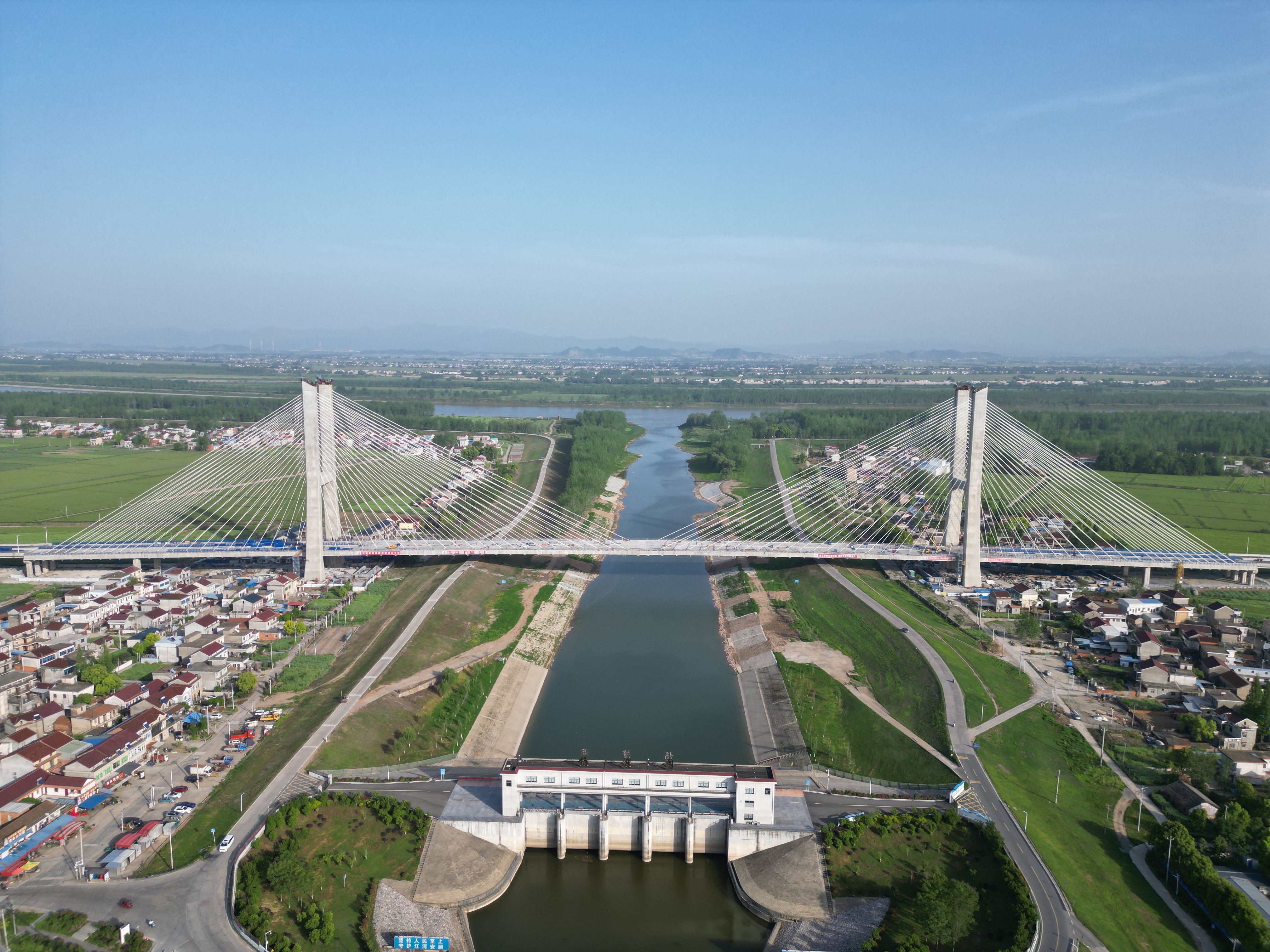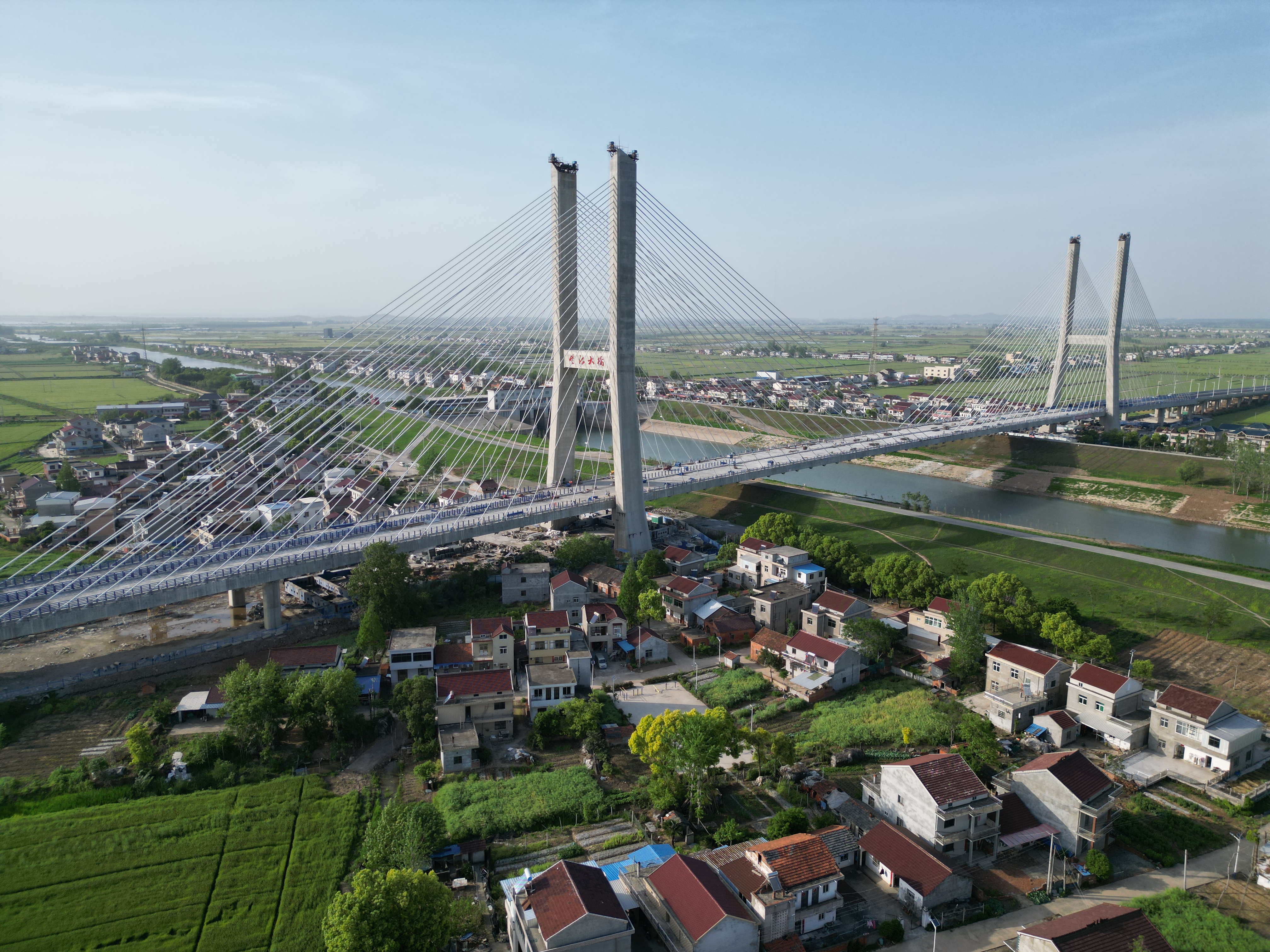 項(xiàng)目控制性工程楊灣河特大橋全長(zhǎng)1322米,由685米雙塔預(yù)應(yīng)力混凝土斜拉橋與637米東西引橋組成,主塔塔高110米,其中主跨365米,是安徽省在建同類預(yù)應(yīng)力鋼筋混凝土斜拉橋第二大跨徑橋梁,僅次于銅陵長(zhǎng)江公路大橋,也是安徽建工集團(tuán)目前承接單跨跨徑最大的橋梁工程。