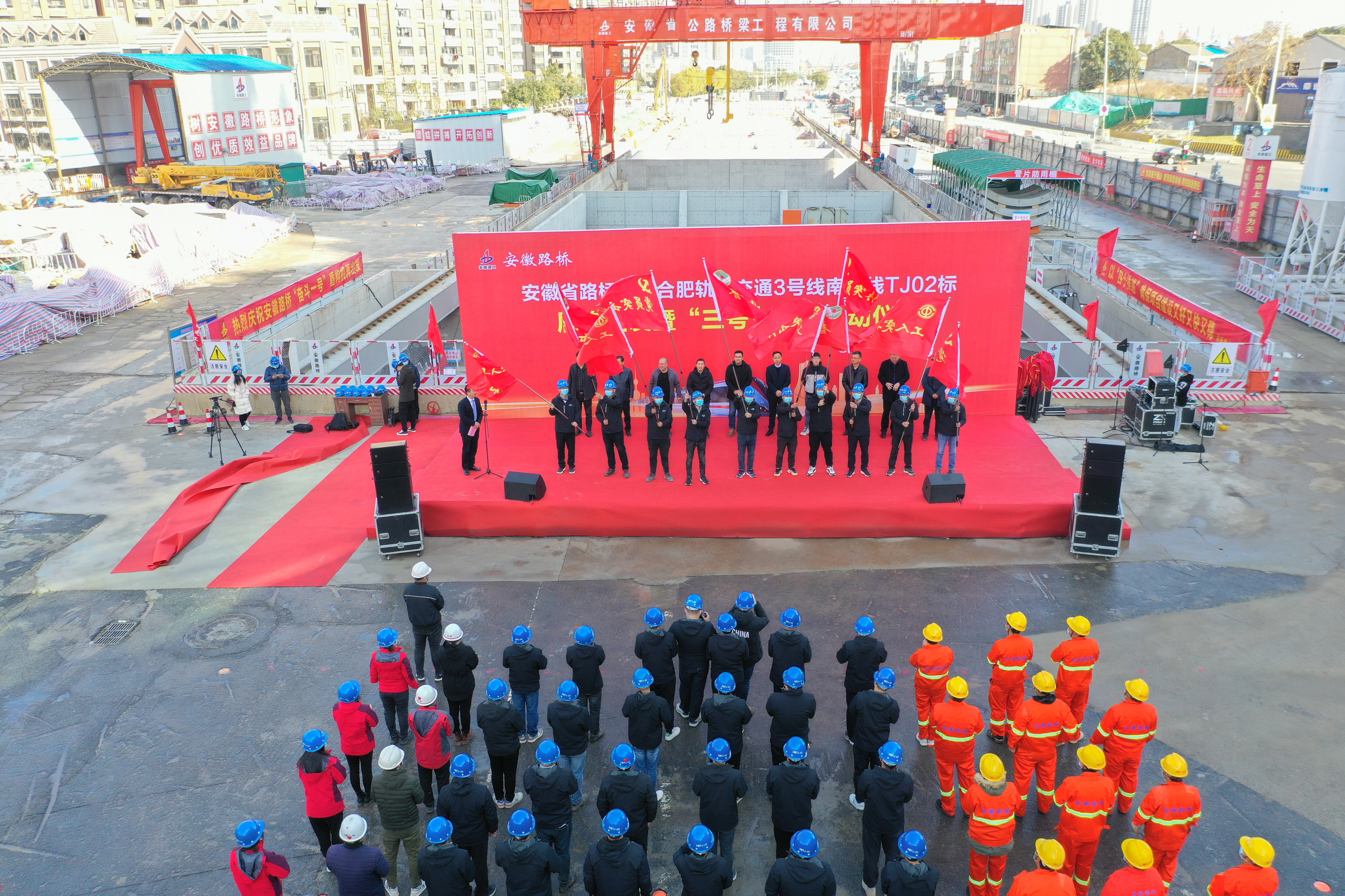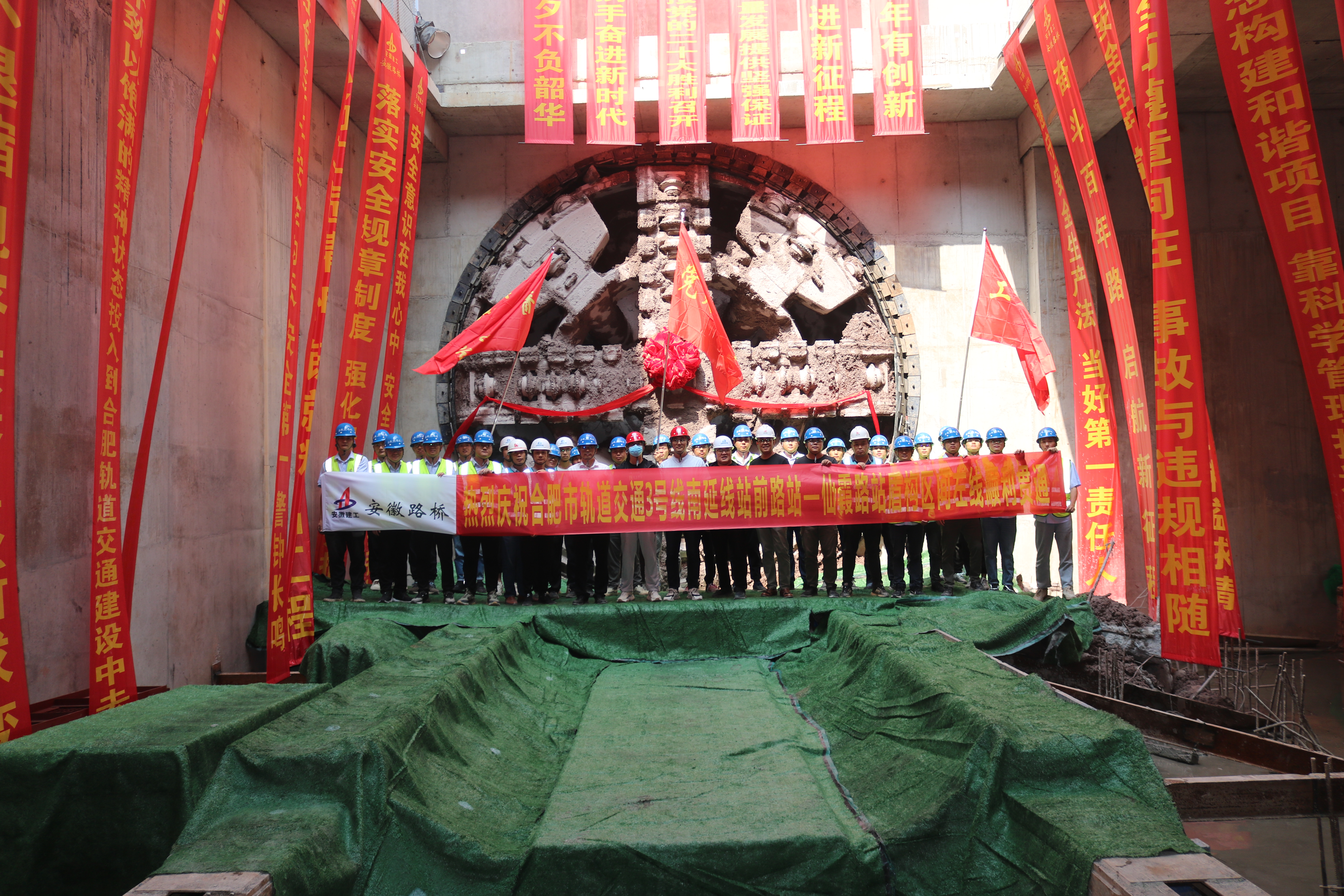 軌道交通3號線南延線TJ02標是安徽省公路橋梁工程有限公司中標承建第二個軌道交通項目。項目主要工程為站前路站、仙霞路站、站-仙區間、仙-青區間等土建和機電施工。目前,已完成車站主體封頂和區間貫通工作。自2020年9月份開工以來,弘揚“自立自強、勇往直前、一次成優”的盾構精神,不懼挑戰敢為人先、不畏困難任事擔當,取得顯著成效。項目集體先后榮獲全國發明、實用新型等專利4項;省住建系統“學雷鋒示范點”稱號、省住建廳“紅色工地”稱號,全省工人先鋒號稱號。