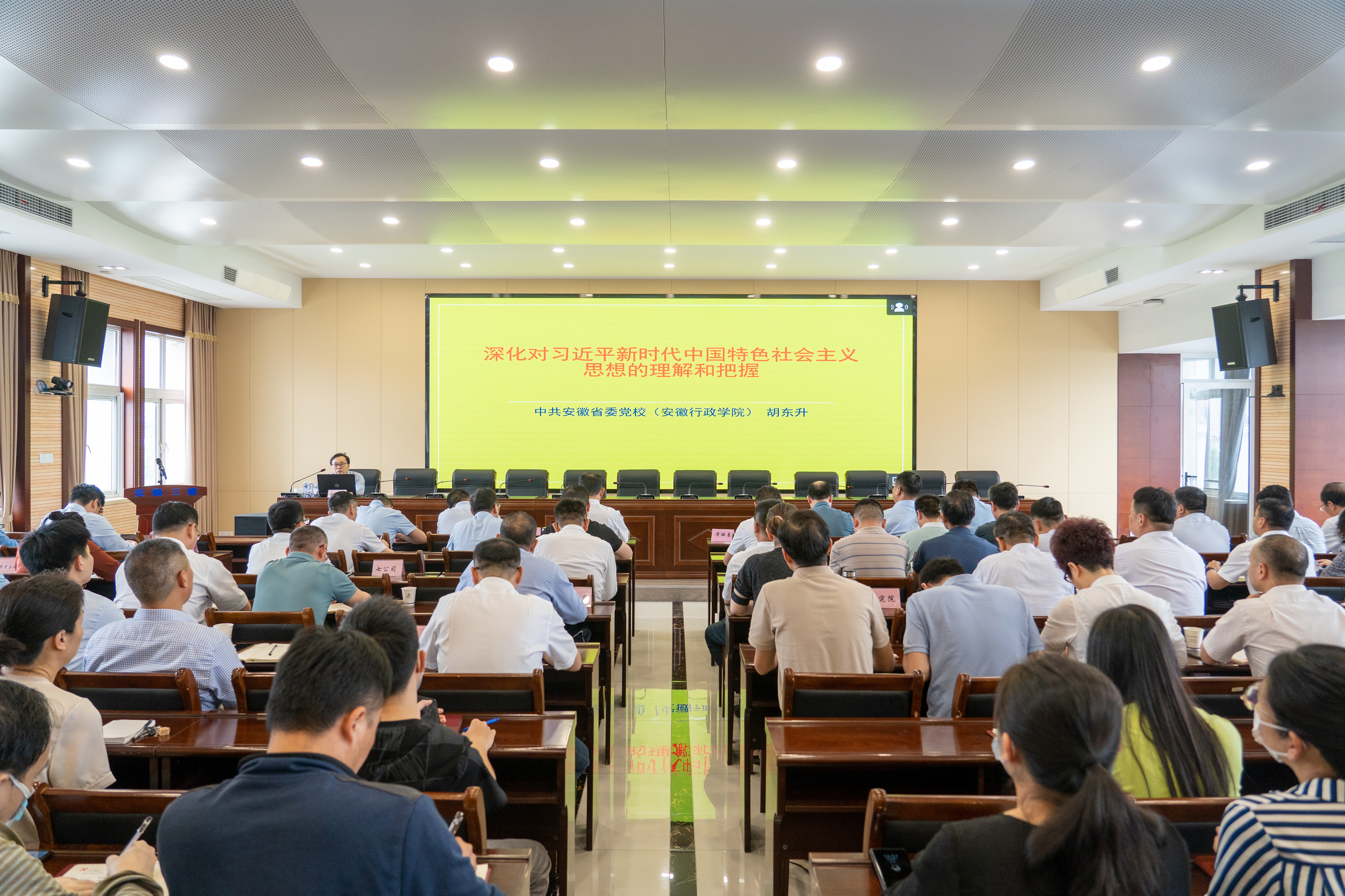 5月31日下午,安徽三建在五樓會議室舉辦學習貫徹習近平新時代中國特色社會主義思想主題教育讀書班專題輔導報告會,邀請省委講師團專家庫高端宣講專家、省委黨校(安徽行政學院)科學社會主義教研部主任胡東升教授作專題講解。會議由公司黨委副書記、工會主席黃麗春主持。