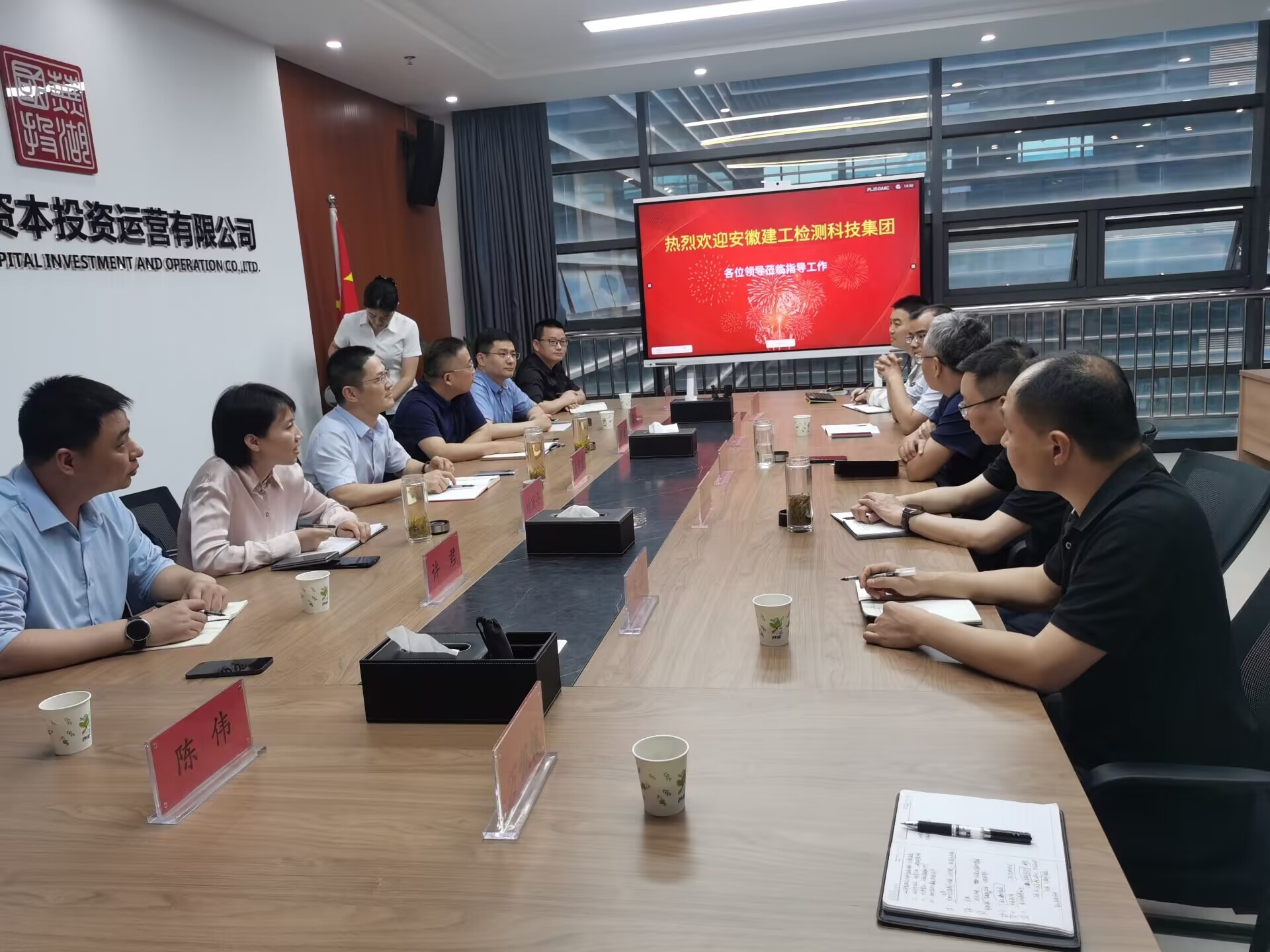 蕪湖市國(guó)有資本投資運(yùn)營(yíng)有限公司總經(jīng)理方曉及有關(guān)負(fù)責(zé)同志,安徽建工集團(tuán)市場(chǎng)開(kāi)發(fā)與投資部劉鳳平,安建檢測(cè)領(lǐng)導(dǎo)郭楊及有關(guān)部門(mén)負(fù)責(zé)同志參加座談。