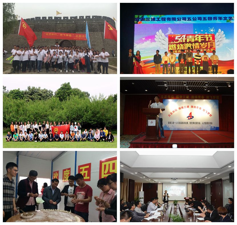 所屬各級團組織充分發揮橋梁紐帶作用,積極創新工作思路,將團的工作融入生產經營管理中心工作,服務企業服務青年。通過召開“五四”表彰會、青年座談會、“一學一做”主題團課,表彰先進,選樹典型,傾聽青年呼聲,推進“一學一做”落到實處。同時因地制宜,結合本單位和現場施工生產實際,創新活動載體,先后組織開展了青年歌手比賽、合唱比賽、演講比賽、籃球賽、羽毛球賽、戶外拓展訓練、青年聯誼會、參觀革命圣地、重溫入團誓詞、走進國禎書院、關愛留守老人等各項形式多樣、內容豐富、主題鮮明的團日活動,在加強青年思想教育和提升崗位業務技能的同時,進一步豐富了青年員工思想、文化生活。活動過程中,團員青年們有的在運動中奮力拼搏,展現出勇爭一流的拼搏精神;有的在拓展訓練中互幫互助,表現出卓越的團隊意識;有的在座談會中互相分享工作經驗,交流心得體會;有的則用勞動與真情服務、溫暖著社會弱勢群體,履行國有企業社會責任,展示企業形象。