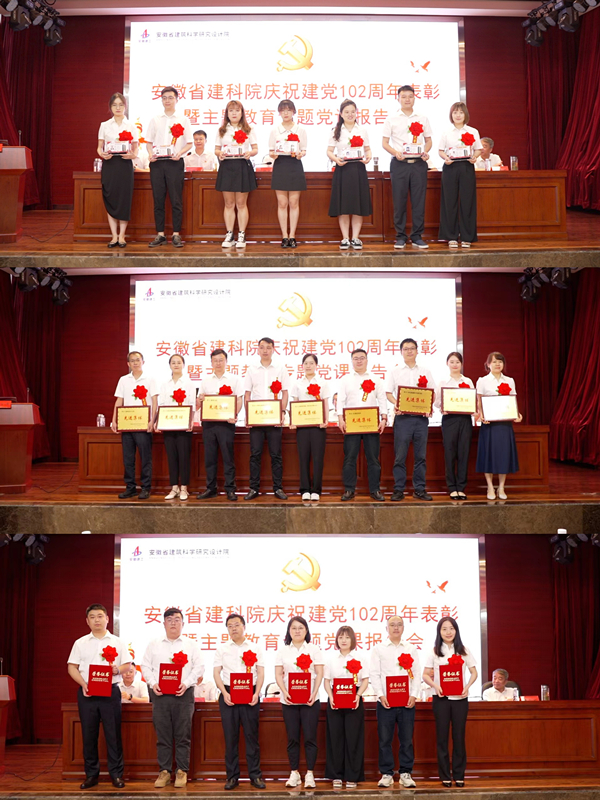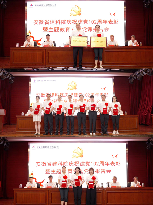 在中國共產黨成立102周年之際,為重溫黨的光輝歷程,緬懷黨的豐功偉績,推動主題教育走深走實。7月4日上午,安徽建科黨委隆重舉行慶祝建黨102周年表彰暨主題教育專題黨課報告會。黨委書記、董事長項炳泉作了題為《深化改革創新,推動安徽建工設計做大做強》的專題黨課報告。院領導班子成員,所屬各黨支部班子成員,全體中層人員,中層崗位模擬任職人員,無黨派人士代表,受表彰代表近90人參加會議。會議由黨委委員、副院長崔林釗主持。