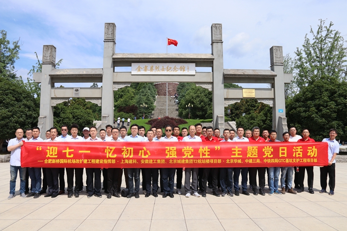 在慶祝中國共產黨成立102周年之際,合肥新橋國際機場改擴建工程項目指揮部、上海建科、安徽建工集團、北京城建集團、合肥新橋國際機場T2航站樓項目部等參建單位赴金寨縣聯合開展“迎七一 憶初心 強黨性”主題黨日活動。黨員們在聽、看、感、悟中接受思想洗禮,堅定理想信念,以更加飽滿的精神狀態助力項目建設跑出“加速度”。