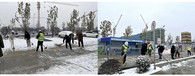 潭沖河家園項目部聯合監理部開展安全隱患檢查,共同清掃項目駐地及現場道路積雪。