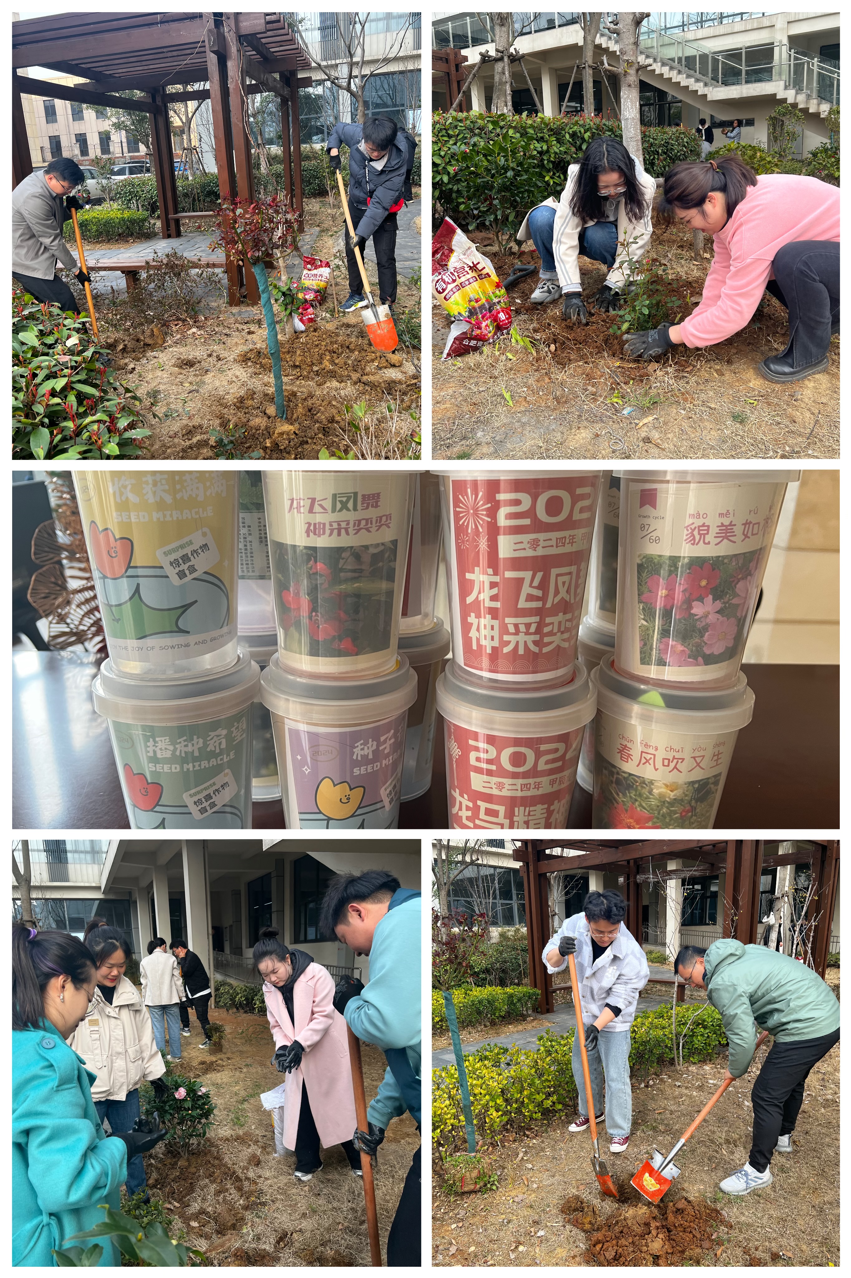 活動現場,青年志愿者們三五人一組,揮鍬鏟土、扶苗培土、圍堰澆水,相互配合,種下芍藥、茶花、月季等花苗。一上午的揮汗奮戰,70余株苗木在建科園區安家落戶。經過幾場大雪變得枯黃的草地瞬間春意盎然,一株株苗木迎風挺立,在園區一角煥發出勃勃生機。活動最后,院團委準備了富有寓意的種子盲盒,供各位志愿者抽取帶回,期待他們可以栽種希望,收獲美好。