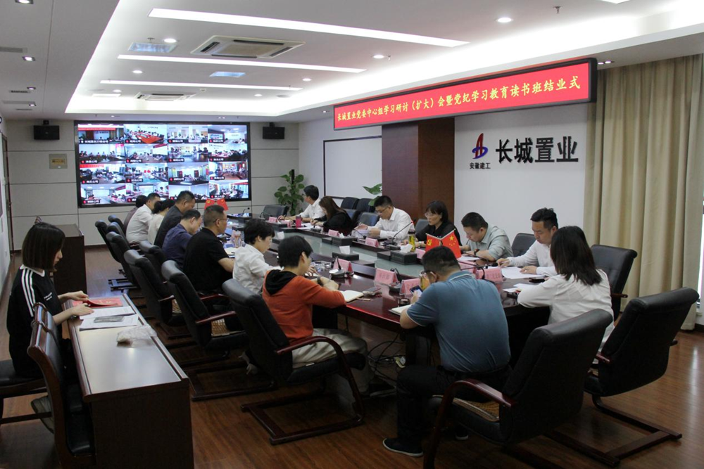 5月17日,長城置業召開黨委中心組學習研討(擴大)會暨黨紀學習教育讀書班結業式,公司黨委副書記、總經理王詩旵作總結講話。公司領導班子成員、機關各部門負責人在安建大廈20樓第一會議室參會,各項目以視頻方式參會。會議由黨委副書記、工會主席宋菊紅主持。