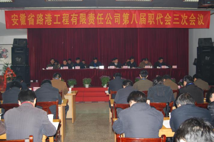 3月6日至3月7日上午,安徽省路港工程有限責任公司第八屆職工代表大會第三次會議在合肥勝利召開。出席大會的正式職工代表65人,列席職工代表20人。安徽建工集團黨委書記張海平、工會副主席李鵬飛、黨委工作部主任吳曉伍、董事會秘書徐文聯等親臨大會。