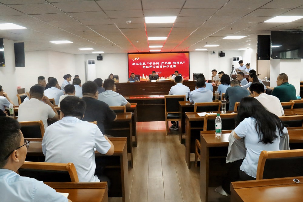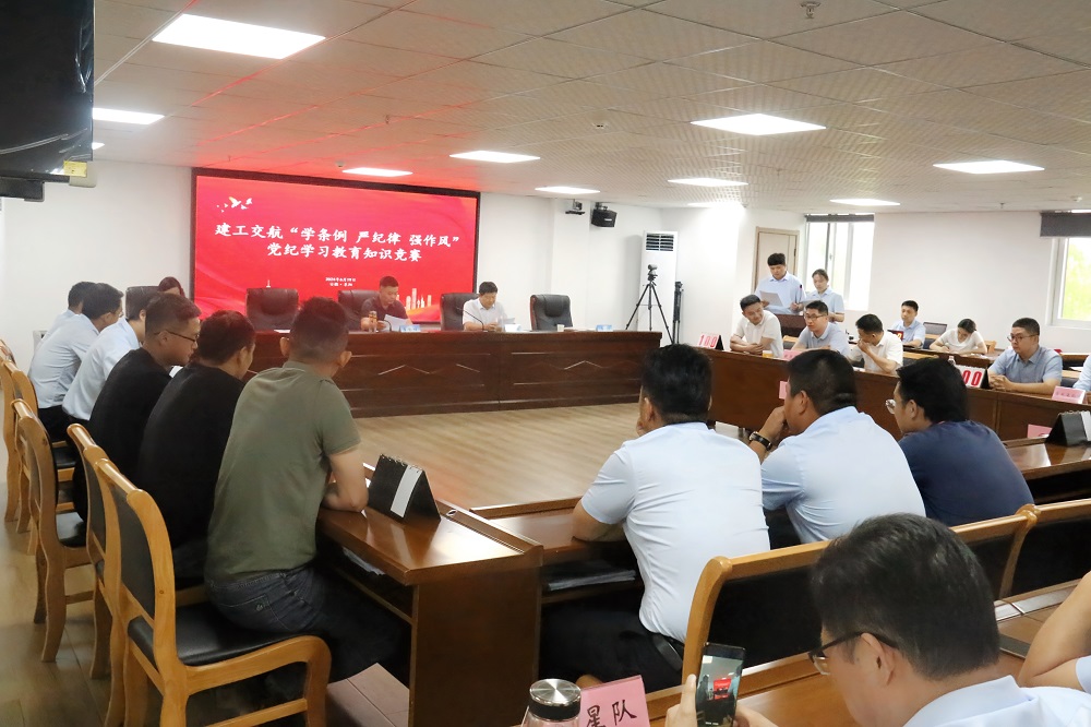 為深入推進(jìn)黨紀(jì)學(xué)習(xí)教育主題活動(dòng),教育引導(dǎo)黨員干部做到學(xué)紀(jì)、知紀(jì)、明紀(jì)、守紀(jì),以競賽形式檢驗(yàn)學(xué)習(xí)成果,6月19日,建工交航開展“學(xué)條例 嚴(yán)紀(jì)律 強(qiáng)作風(fēng)”黨紀(jì)學(xué)習(xí)教育知識競賽。公司黨委副書記、總經(jīng)理李登祥出席活動(dòng),黨委委員、副總經(jīng)理、工會(huì)主席王黎明致辭。公司機(jī)關(guān)黨總支書記、財(cái)務(wù)資產(chǎn)部部長李愛平、紀(jì)檢室負(fù)責(zé)人李衍、團(tuán)委書記李鳳祥及各代表隊(duì)領(lǐng)隊(duì)、隊(duì)員共計(jì)50余人參與此次活動(dòng)。