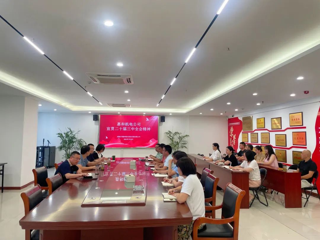 嘉和機電黨支部召開集體學習會,傳達學習貫徹黨的二十屆三中全會精神,要求結合嘉和機電生產經營實際,把宣貫落實會議精神轉化為推動企業改革發展的動力,立足全年目標任務,向著做專做精做強企業發展目標邁進。