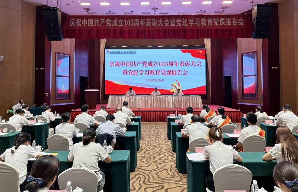 近日,酒店公司黨委組織召開慶祝中國共產黨成立103周年表彰大會暨黨紀學習教育黨課報告會。公司黨委副書記、副總經理李靜波出席會議并以《嚴守紀律規矩 彰顯忠誠擔當》為題作紀律黨課報告。公司領導班子成員、公司機關全體干部職工,所屬酒店領班及以上干部職工、受表彰人員代表等參加會議。