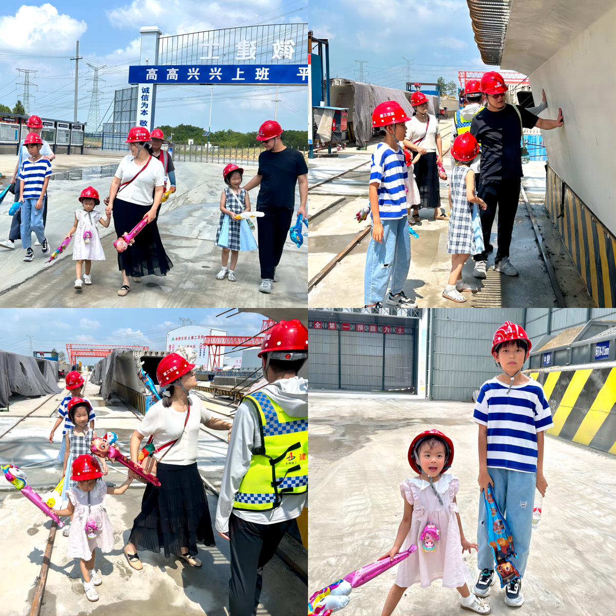 在父母的帶領(lǐng)下,“小候鳥”們戴上安全帽走進了“工地大課堂”,實地參觀了S18寧合高速04標項目施工現(xiàn)場、辦公區(qū)與生活區(qū),“零距離”感受了父母的工作環(huán)境,深刻認識到了工作的艱辛不易,并為他們扎根一線、艱苦奮斗而感到驕傲與自豪。