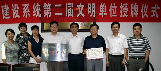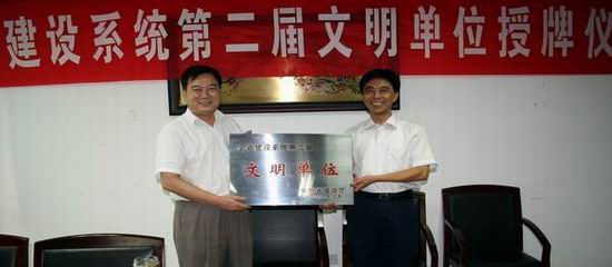 日前,在全省建設系統(tǒng)兩年一屆的文明單位評選活動中,省路橋集團從2萬多家申報單位中脫穎而出,榮獲“全省建設系統(tǒng)第二屆文明單位”光榮稱號,這也是全省建筑類企業(yè)唯一獲此殊榮的單位。7月14日下午,省建設廳文明辦領導、建工集團黨委工作部吳曉伍主任、機關黨委宋曉英書記等冒著酷暑,親臨該公司進行授牌。省路橋集團董事長、總經理童宗勝,黨委書記、副董事長吳銳智,副總經理、工會主席朱曉奎及相關部門負責人參加了授牌儀式。