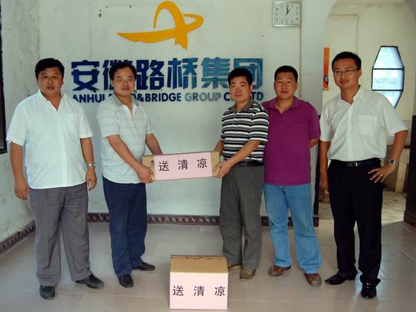 烈日當空,酷熱炎炎。為給各正值高溫大干時節的項目職工送去絲絲清涼,將公司領導的款款深情送到基層,把對一線職工安全健康的關愛送到職工的心坎上,7月20~24日,省路橋集團副總經理、工會主席朱曉奎率工會、辦公室有關人員分別看望慰問了公司部分在建項目——績黃高速01標、黃祁高速05標、G205湯潛段、S322桃甘段項目部的一線職工,并給他們帶去花露水、清涼油和精致水杯等防暑降溫物品。