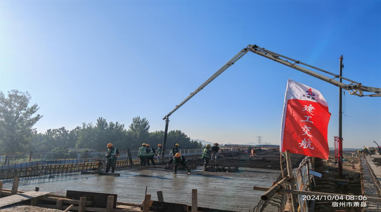 近日,經(jīng)過(guò) 10小時(shí)的連續(xù)奮戰(zhàn),徐淮阜高速宿州段路基02標(biāo)項(xiàng)目孫圩子互通C匝道橋最后一聯(lián)現(xiàn)澆頂板澆筑完成。這標(biāo)志著孫圩子互通區(qū)所有現(xiàn)澆梁全部圓滿澆筑完成,項(xiàng)目全面進(jìn)入快速收尾階段,為實(shí)現(xiàn)早日通車目標(biāo)打下了堅(jiān)實(shí)基礎(chǔ)。