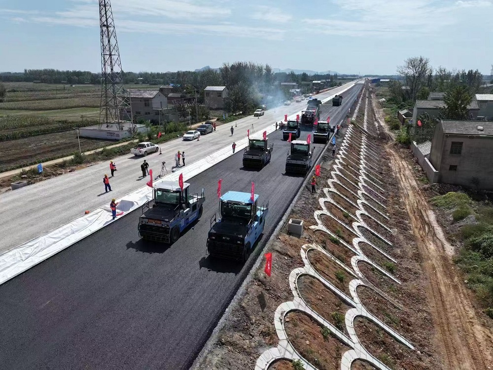 隨著宣涇高速一期01標主線瀝青攤鋪施工的全面結束,建工建投設備租賃公司充滿“科技”的隊伍轉戰至徐淮阜高速宿州段。在該項目路面02標下面層瀝青試驗段K27+400-K27+800右幅施工現場,依舊采用無人駕駛攤鋪碾壓技術,保證了攤鋪質量,也加快了攤鋪速度。除此之外借助北斗衛星高精度定位,合理規劃路徑,保持安全間距,降低了人為操作風險。