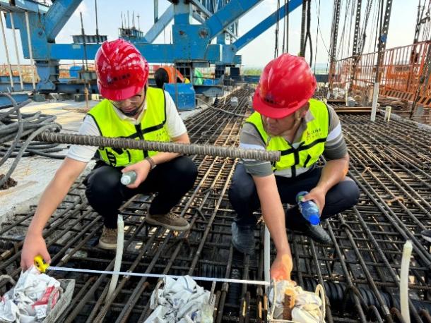 “沉浸式”服務,護航工程質量全過程。公司科技數字中心(技術質量部)部駐點宣城青弋江項目、涇青高速、S346等重點項目工地,參與主跨懸澆合龍段隱蔽工程驗收及過程旁站,參與施工方案比選優化,將方案審核前置到編制階段,參與質量通病治理、新技術開發應用、深度參加科研項目研究等,深入項目一線,服務監督項目技術質量管理工作。