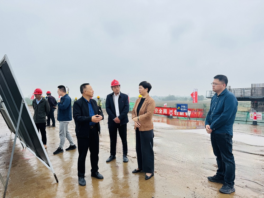 童少艷一行深入黃滸河特大橋施工現場,實地查看了項目進展情況,聽取項目負責人關于項目概況及工程進度的詳細匯報。童少艷對項目當前取得的階段性成果表示肯定,并強調,一是要狠抓安全監管,盯緊節點、加強調度,優化施工組織,提升工程質量;二是各部門要保持密切聯動、強化監管保障,力爭項目早竣工、早投產、早見效。