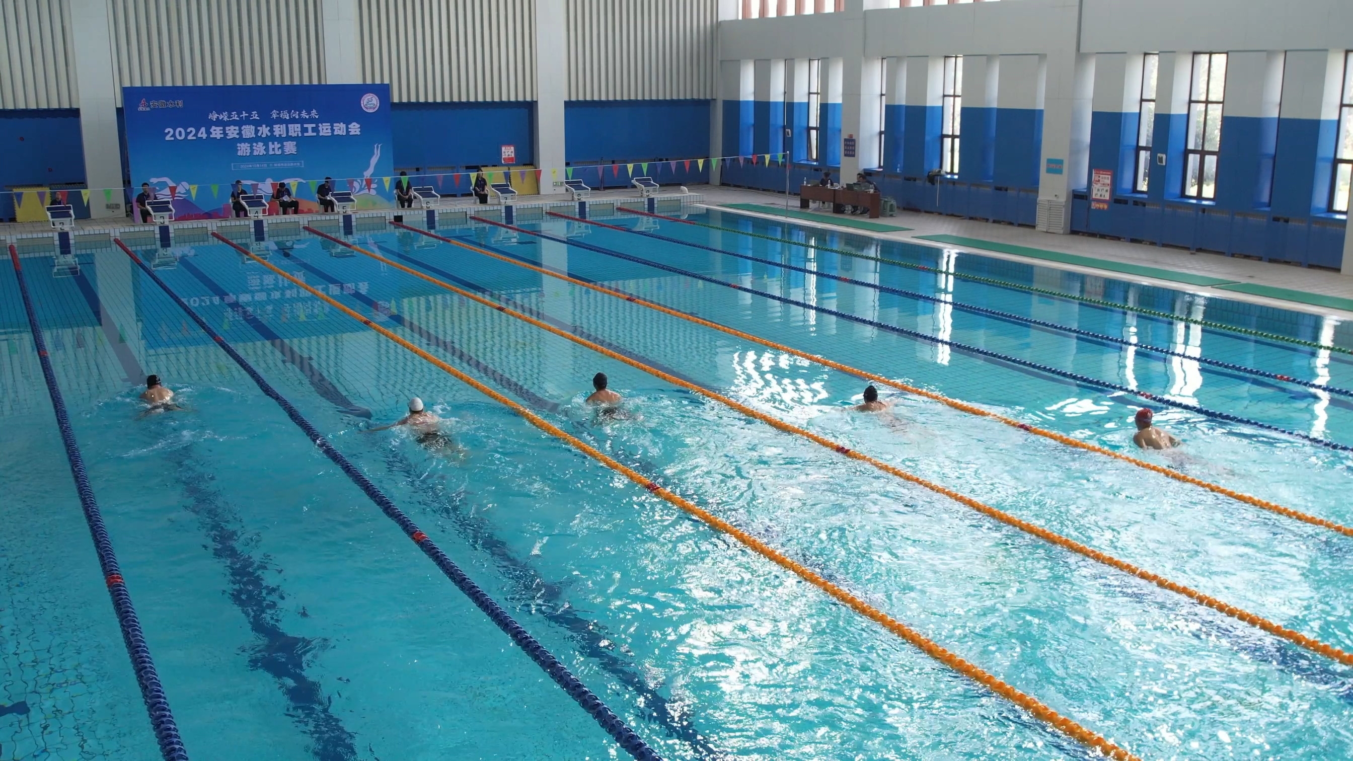 10月14日,安徽水利2024年職工游泳比賽在蚌埠市游泳跳水館舉行,共有18家單位30余名職工參賽。