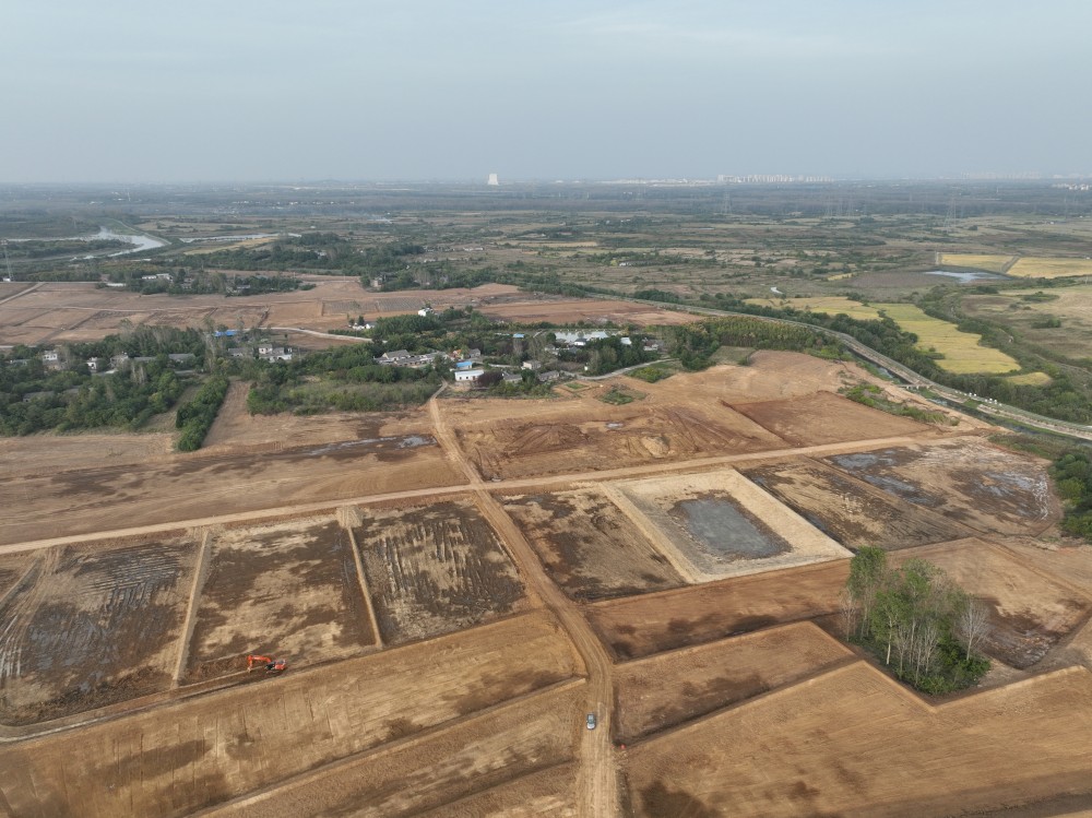 在項目建設(shè)現(xiàn)場,田野中一派熱火朝天的施工景象,田間挖掘機陣陣轟鳴,大型機械來回穿梭平整田塊及開挖溝渠,多臺大型設(shè)備同時作業(yè),緊張有序進(jìn)行著,確保冬麥播種不誤時。