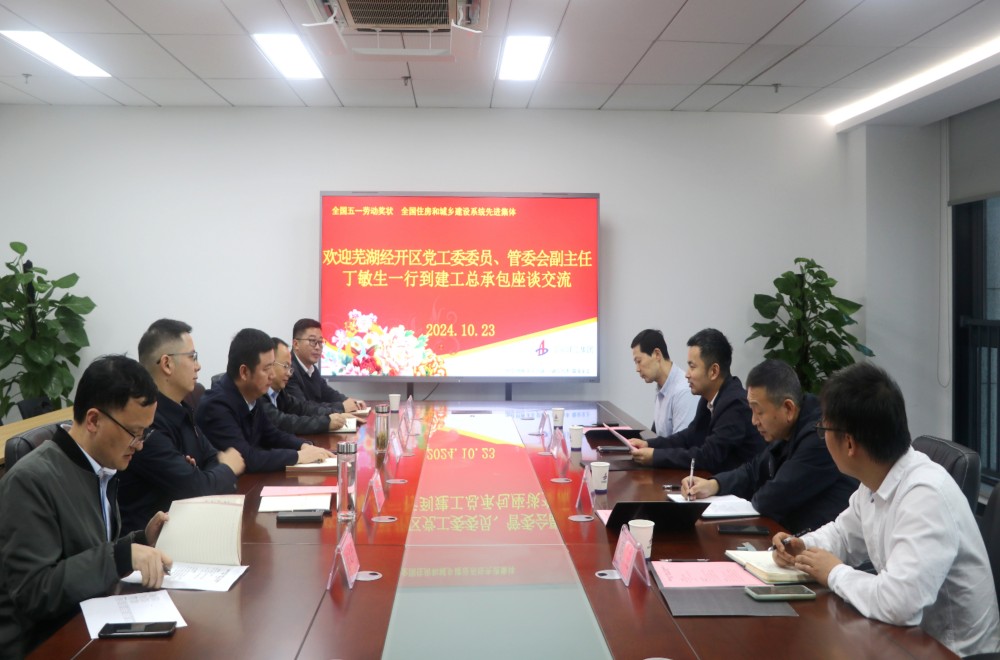 10月23日下午,蕪湖經開區黨工委委員、管委會副主任丁敏生一行到訪建工總承包,公司黨委書記、總經理傅宏林熱情接待,并舉行工作會談。