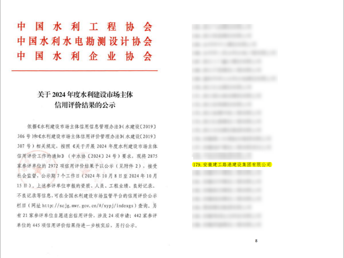 近日,從中國水利工程協會傳來喜訊,公司成功通過了2024年度水利建設市場主體信用評價,榮獲“AAA”級認證。這是對公司長期以來在水利建設領域取得的成果和實力的充分肯定。