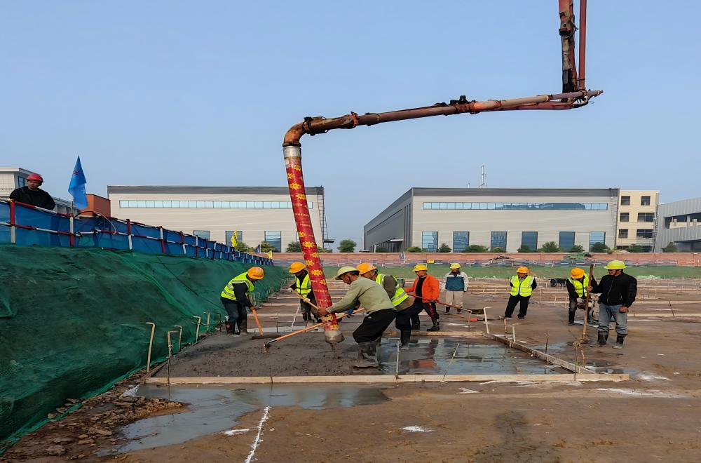10月29日,該項(xiàng)目生產(chǎn)車間、倉(cāng)庫(kù)、辦公樓順利澆筑“第一泵”,為完成“大干一百天”產(chǎn)值目標(biāo)打下“基礎(chǔ)墊層”。