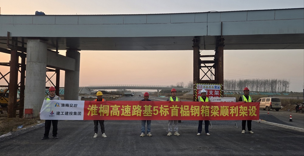 11月3日上午,由建工建投集團承建的淮桐高速05標(biāo)項目首榀鋼箱梁順利架設(shè)完成。