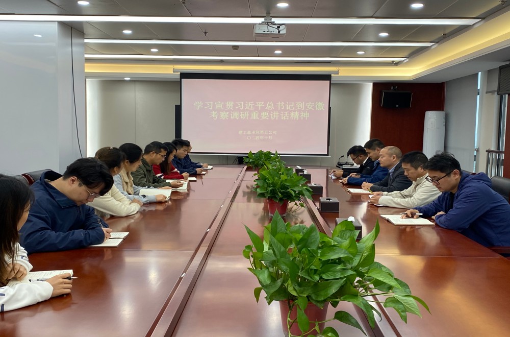 10月31日,第五公司召開專題會議,傳達學習習近平總書記考察安徽重要講話精神。會議要求,一要提高政治站位,堅定擁護“兩個確立”、堅決做到“兩個維護”,迅速掀起學習宣貫熱潮,把握豐富內涵、吃透精髓要義。二是深入貫徹落實習近平總書記關于抓好第四季度經濟工作指示精神,全力以赴搶抓市場經營,加快在建項目建設,以高質高效完成全年各項目標任務檢驗學習貫徹成效。
