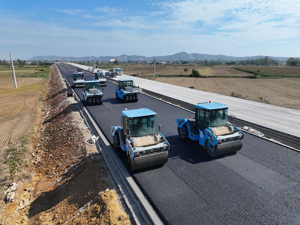 徐淮阜高速項(xiàng)目施工現(xiàn)場熱火朝天,建工建投設(shè)備租賃公司智能化攤壓設(shè)備正在夜以繼日的進(jìn)行無人駕駛攤壓施工。