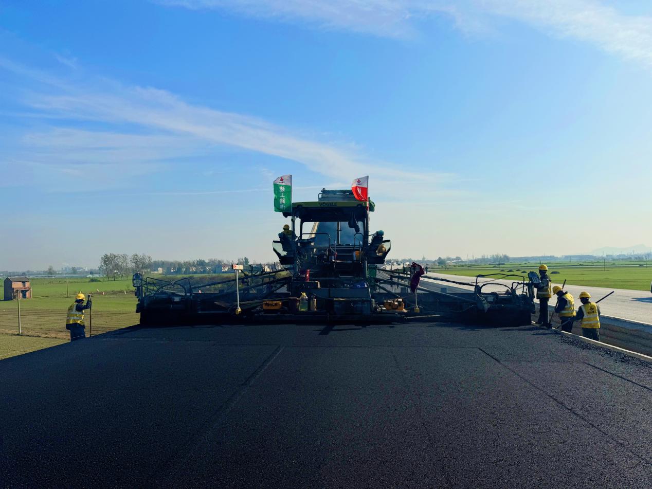 自10月下旬順利完成試驗段攤鋪后,近日,徐淮阜路面01標開啟全線瀝青面層大面積攤鋪工作。