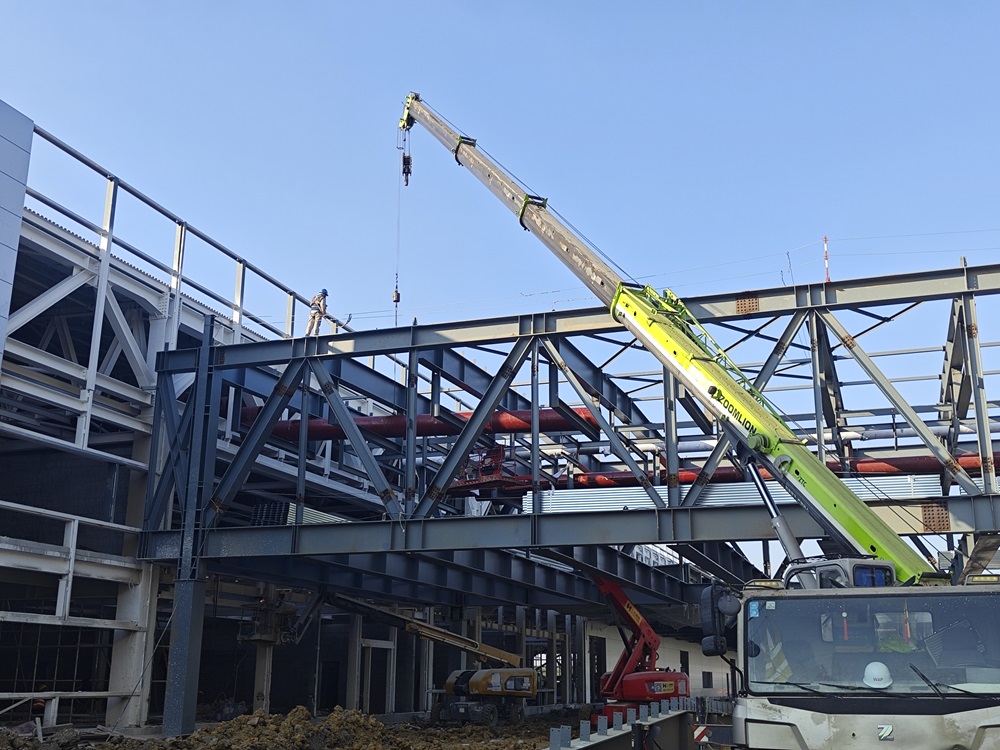 雖已立冬,天氣轉涼,但建工安裝合肥新橋智能制造產業園一階段一標項目部戰鼓依然在響,施工現場依舊是一片奮戰猶酣的火熱場面。吊車揮舞著“長臂”、升降車起起落落、施工車來回穿梭、工人們忙忙碌碌,敲擊聲聲聲入耳……一切都在為確保競賽節點努力拼搏著。