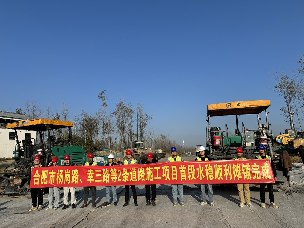 2024年11月12日,合肥市楊崗路、幸三路等2條道路施工項目底基層水穩攤鋪順利完成!
