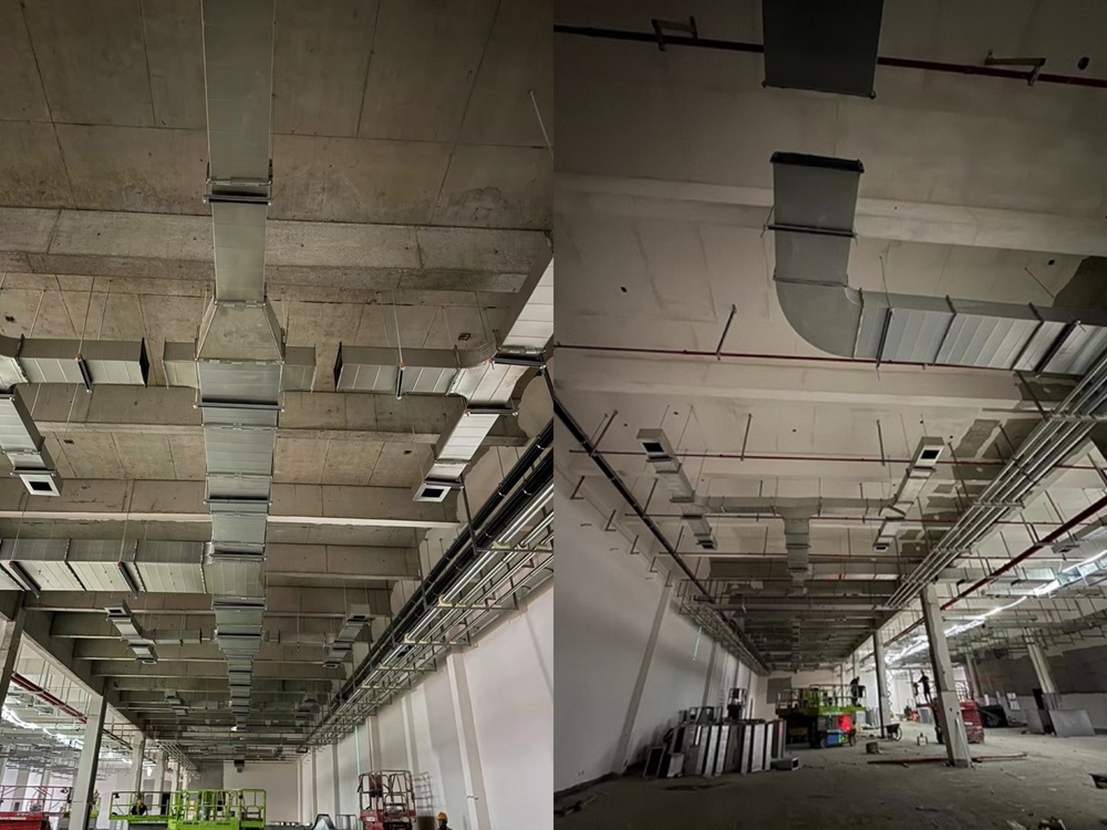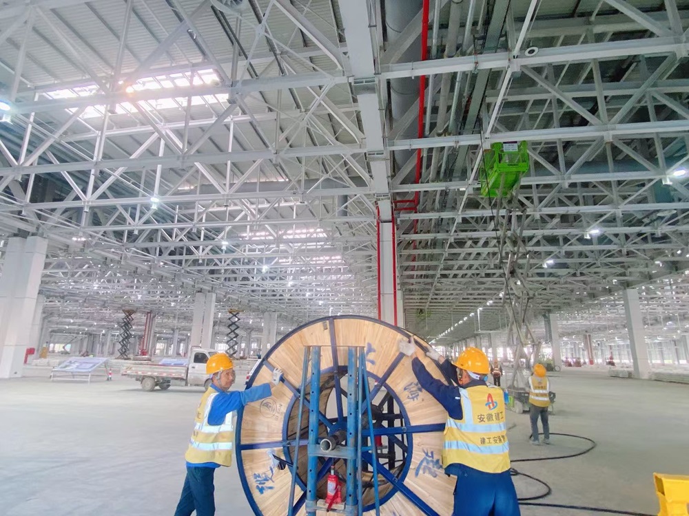 目前,焊裝車間循環(huán)水系統(tǒng)、消火栓系統(tǒng)、給排水系統(tǒng)、壓縮空氣已完成全部管道安裝任務,進入吹掃試驗階段。電氣系統(tǒng)進入電纜放線和柜體箱體安裝階段,暖通系統(tǒng)進入屋頂閣樓安裝階段。