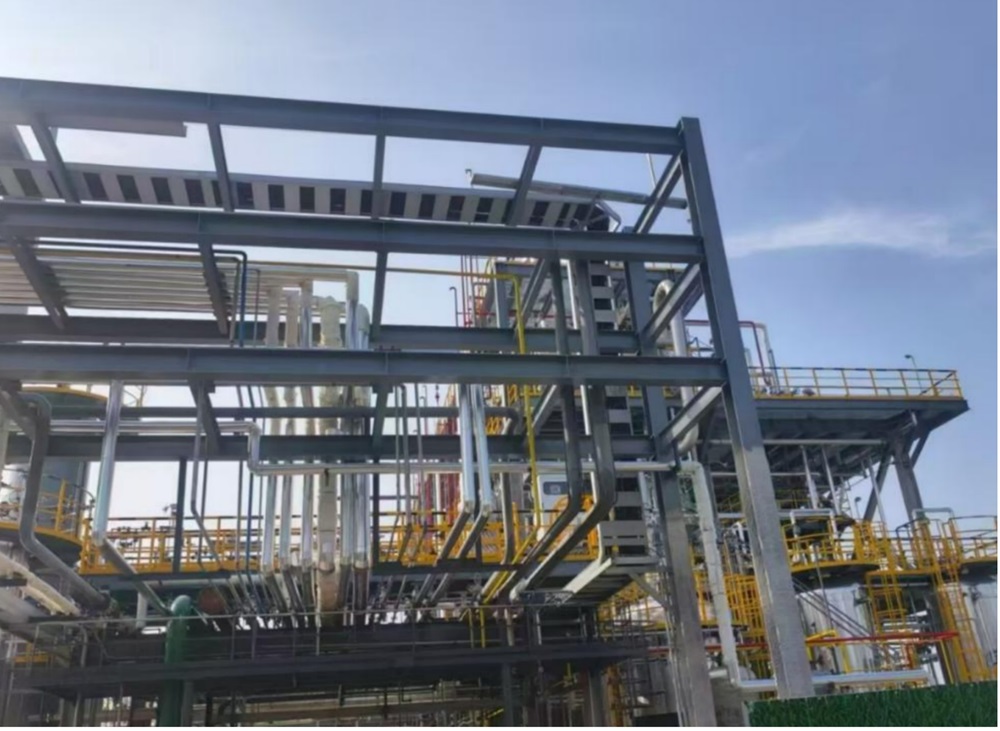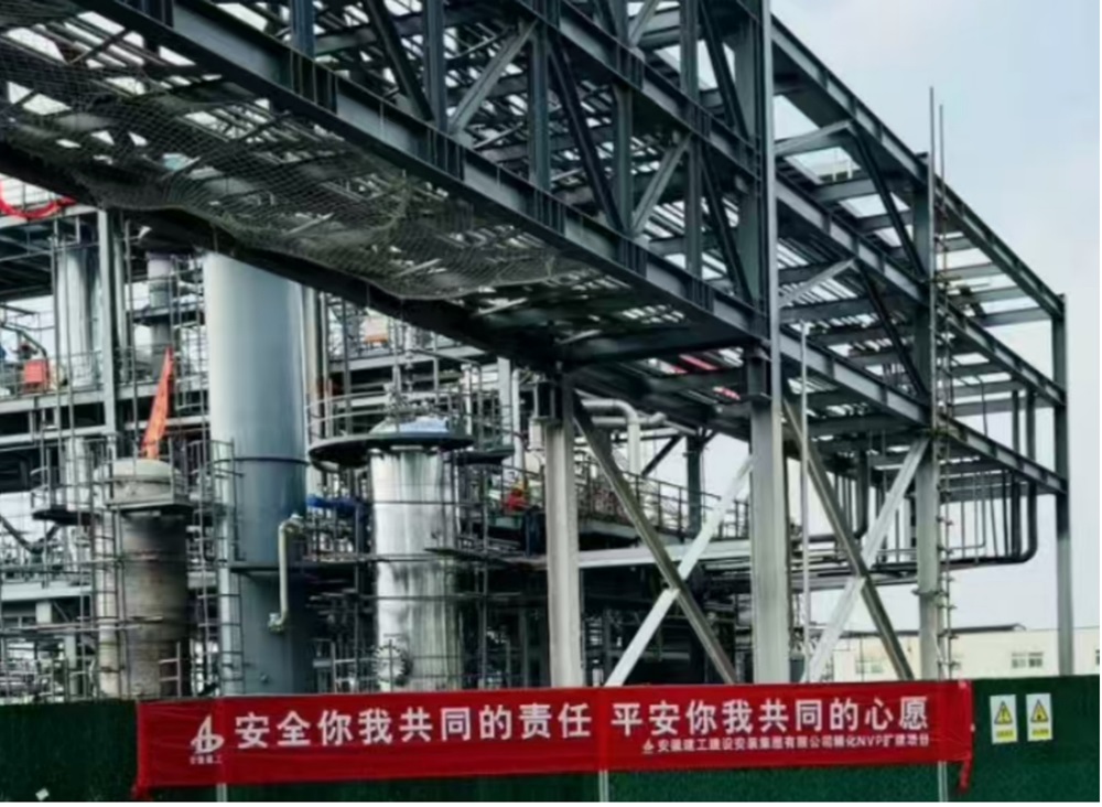 NVP裝置是敞開式鋼框架NVP裝置,為4層工業構筑物,占地面積1845.25平方米,建筑高度17米,已于2024年10月5日完成竣工驗收工作。