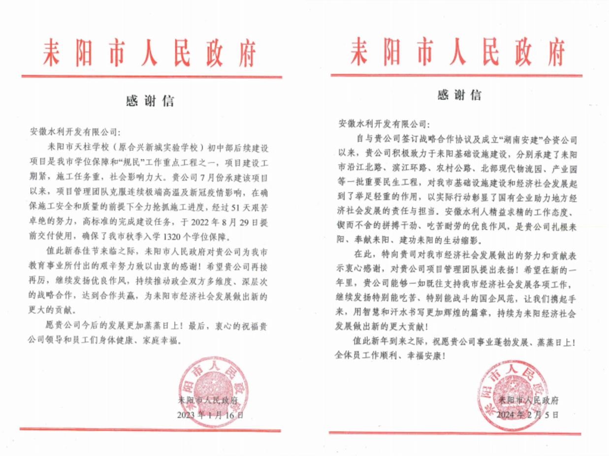 與客戶同心,合作共贏。2024年,安徽水利南方分公司積極融入地方發展大局,推動耒陽市委市政府與安徽水利高層開展互動交流6次,建立起良好互信關系。在此期間,公司還分別與耒陽市人民政府、耒陽經濟開發區管理委員會簽訂了戰略合作框架協議,與耒陽市城市和農村建設投資集團有限公司合資成立了湖南安建建設開發有限公司,建立了政企合作的紐帶。合資公司的成立為助力耒陽基礎設施建設,助推耒陽經濟發展,帶動當地人口就業,增加地方財政稅收等方面貢獻了“湖南安建”的力量,并順利取得建筑工程施工總承包貳級和市政公用工程施工總承包貳級資質資質。