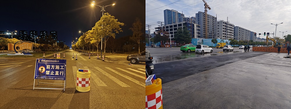 該路口位于交通繁忙的樞紐地帶,周邊環繞著多個居民區,白天車流量巨大。為了將對日常交通的影響降到最低,方便周圍居民出行,項目部經反復論證,決定采取夜間施工,并制定詳盡的應急預案。同時為了確保過往車輛和行人的安全,現場設置了清晰的交通導向標志,安排專職人員進行疏導,于次日早上八點前圓滿完成管道鋪設,路面恢復。