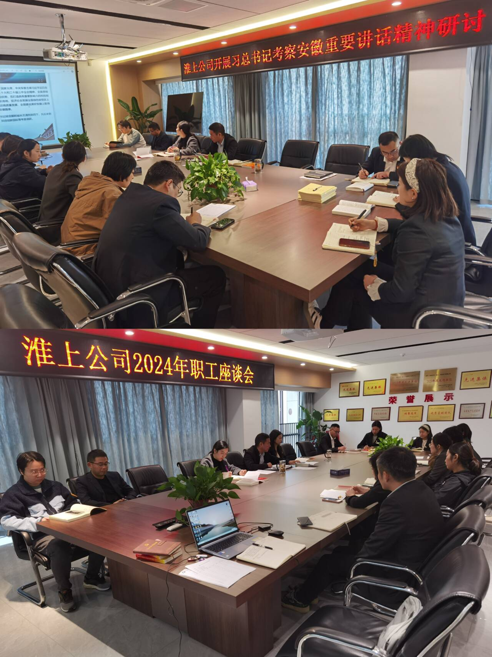 淮上項目組織全體職工召開研討會專題學習習近平總書記考察安徽重要講話精神。會議要求,要把學習宣貫習總書記考察安徽重要講話精神與學習貫徹黨的二十大和二十屆三中全會精神結合起來,堅定不移沿著總書記指引的方向前進,以實際行動堅定擁護“兩個確立”、堅決做到“兩個維護”。