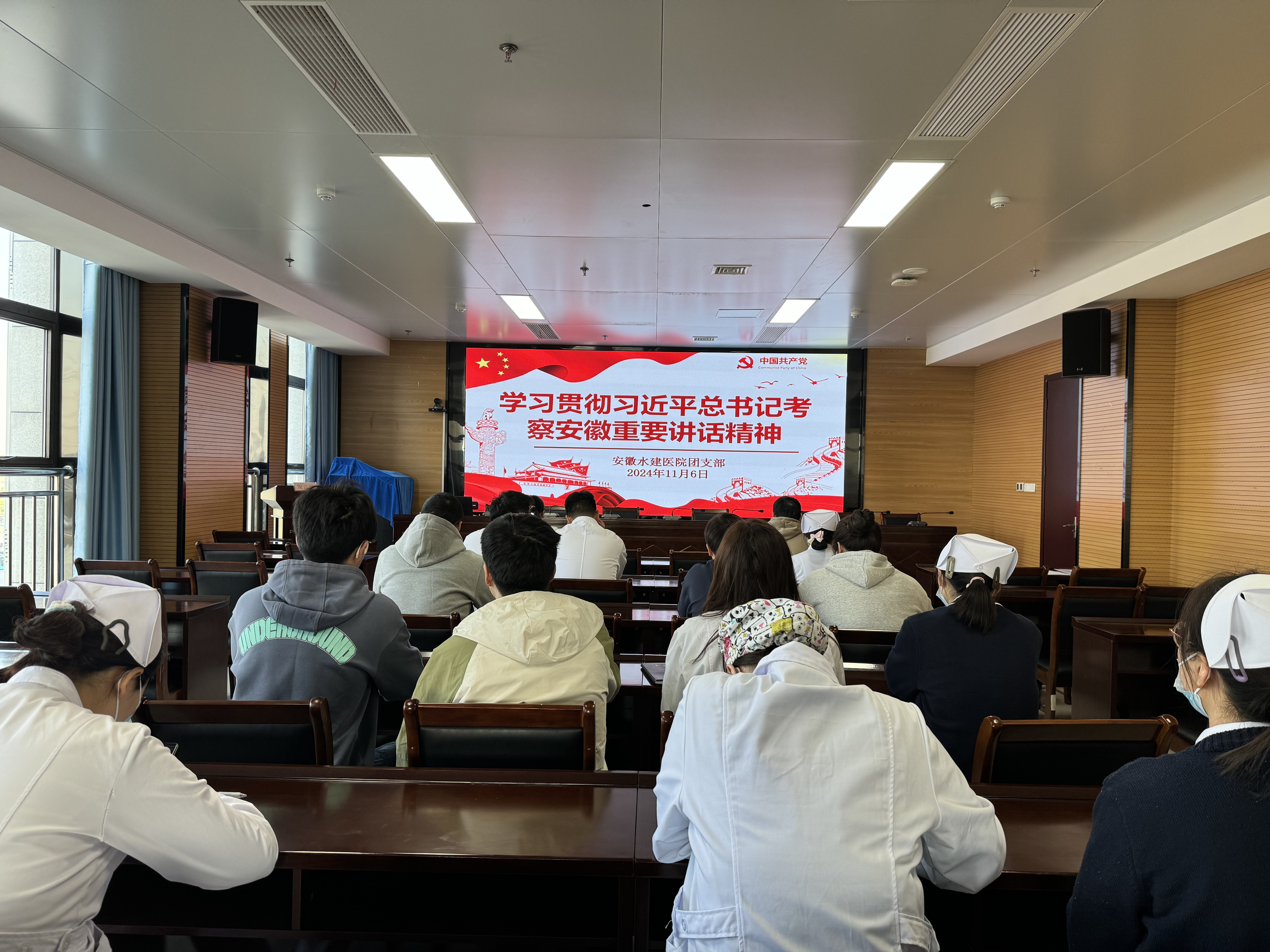 11月6日下午,安徽水建醫院團支部開展專題學習會議,集中學習習近平總書記在安徽考察時的重要講話精神,臨床各部室共20余人參加學習。