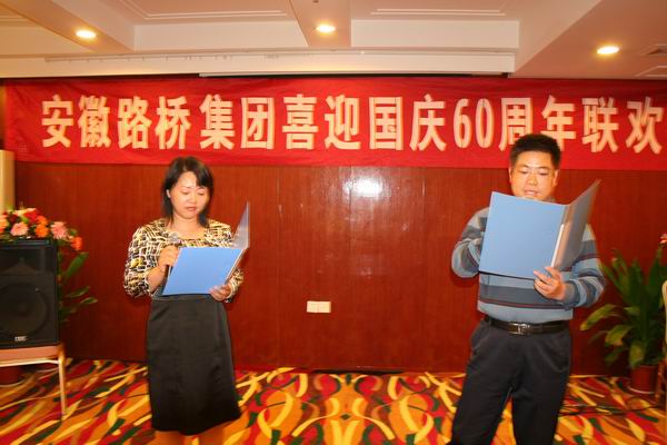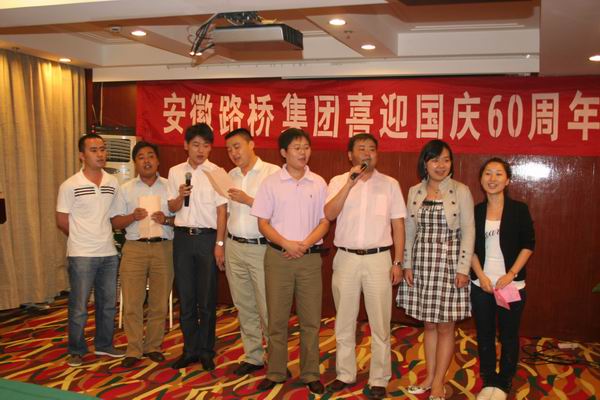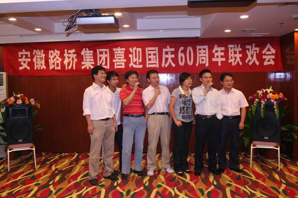 金風送爽飄桂香,皓月相聚情意長。為進一步增進與基層員工的溝通聯系,促進企業和諧發展,提升企業凝聚力。9月26日下午,省路橋集團在肥舉行“喜迎國慶60周年聯歡會”。 公司領導班子成員,各直屬項目主要負責人、生產技術管理骨干代表,各類先進分子70多人歡聚一堂,共同慶賀偉大祖國60歲生日和傳統中秋佳節以及公司今年來各項工作所取得的業績。聯歡會由該公司辦公室夏磊和李曉明主持。