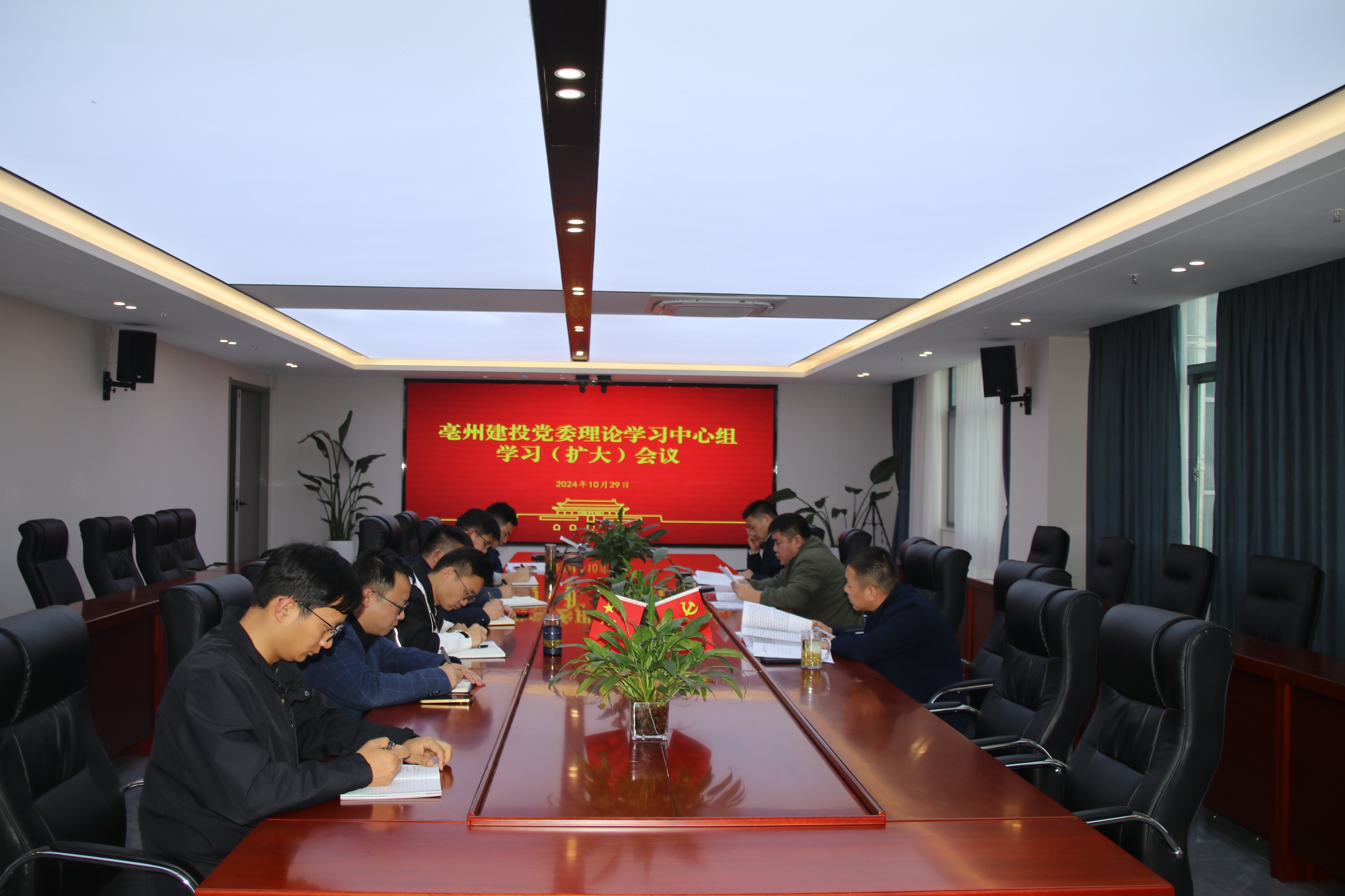 10月29日,安徽建工亳州建投召開黨委理論學習中心組學習(擴大)會議,專題學習習近平總書記考察安徽重要講話精神,以及省委、省國資委黨委和集團黨委理論學習中心組學習會議精神,公司黨委書記、董事長、總經理薛斌主持會議并講話。