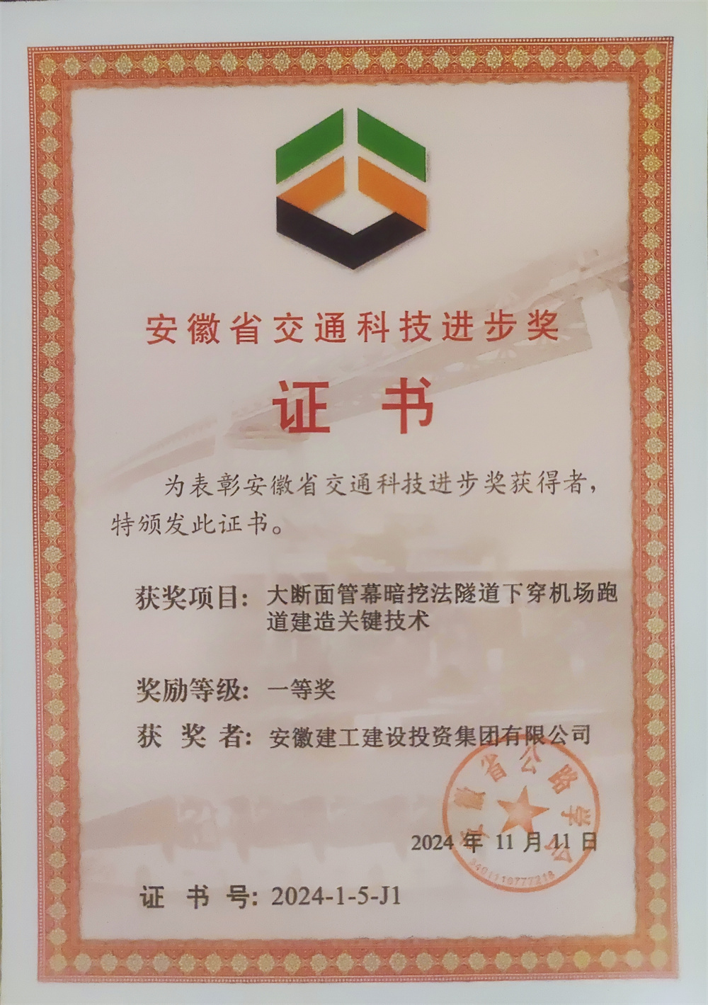 安徽建工建設投資集團申報的5項研究成果獲獎,其中《大斷面管幕暗挖法隧道下穿機場跑道建造關鍵技術》榮獲一等獎;建工建投集團被授予2023-2024年度先進會員單位;安徽省公路學會橋隧專委會被授予2023-2024年度先進學會和分支機構稱號。公司黨委委員、副總經理、總工程師陳莘作為獲獎單位代表上臺領獎。