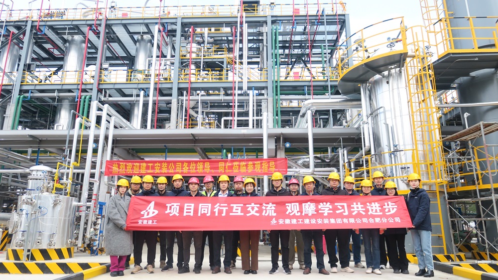 在項目現場,項目負責人介紹了該化工類項目的基本概況和工程特點,分析講解有關工業化項目的整體管理策劃、施工組織、質量控制、安全管理、現場質量安全標準化施工、設備安裝技術等方面的經驗。觀摩過程中,各項目管理人員分享了自身在質量安全文明標準化施工管理、施工樣板做法和實體工藝質量管理情況的經驗做法。現場一個個技術含量足、輻射帶動強、綜合效益高的新技術、好想法層出不窮,學習交流氛圍熱烈濃厚。