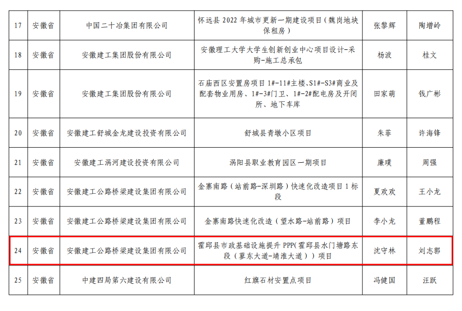 近日,在全體參建單位共同努力下,安徽建工投資建設的霍邱縣市政基礎設施提升PPP項目子項水門塘路東段項目獲評“2024年度華東地區建筑施工安全生產標準化工地”稱號。