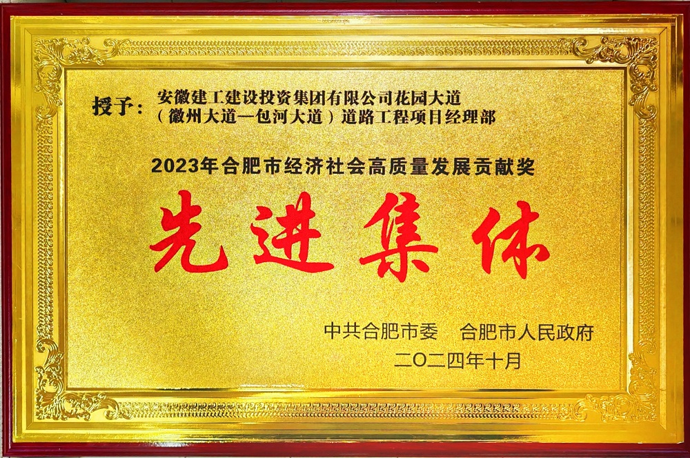 近日,“2023年合肥市經(jīng)濟社會高質(zhì)量發(fā)展貢獻獎”名單公布,建工建投集團花園大道(徽州大道-包河大道)道路工程項目經(jīng)理部被中共合肥市委、合肥市人民政府授予“2023年合肥市經(jīng)濟社會高質(zhì)量發(fā)展貢獻獎(城市建設管理)先進集體”稱號。