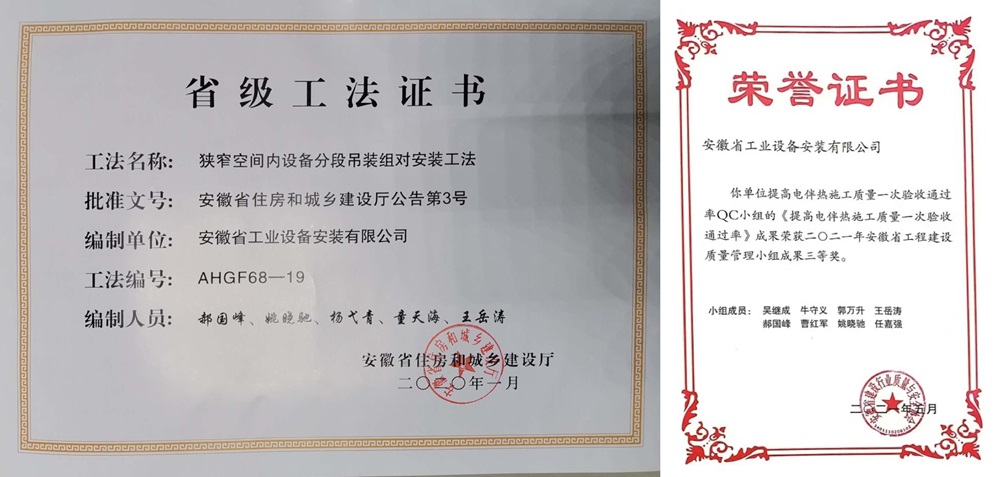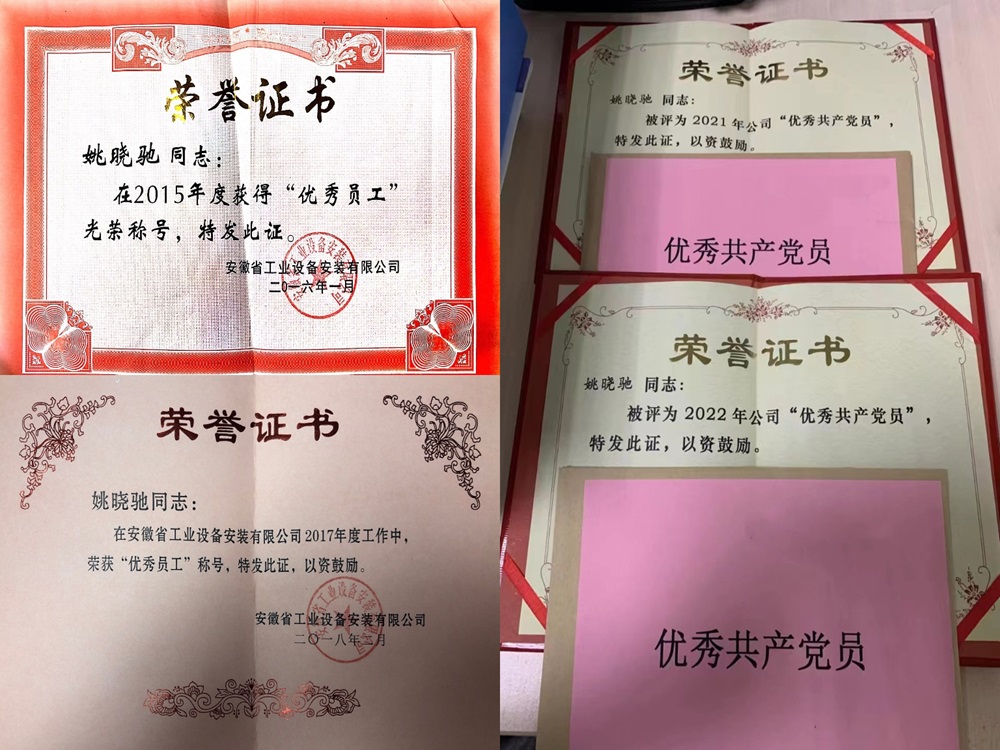 在繁忙的工作之余,姚曉馳對專業(yè)知識的探索與熱愛從未有片刻停歇。他仿若一位求知若渴的行者,積極主動地在知識的海洋中破浪前行,持續(xù)拓寬并深化自身的知識體系。他參與研發(fā)的《狹窄空間內(nèi)設備分段吊裝組對安裝工法》成功榮獲安徽省住房和城鄉(xiāng)建設廳頒發(fā)的省級工法稱號,《提高電伴熱施工質量一次驗收通過率》也榮獲了安徽省工程建設質量管理小組成果三等獎。