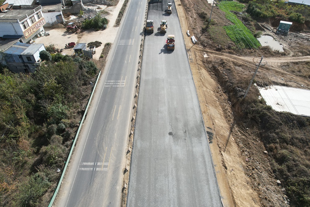 近日,建工建投G104明光段一級公路改建工程二標段項目進行SK3+840-SK4+410右幅,全長570米水泥穩定碎石層鋪設,標志著項目進入水穩大干施工階段。