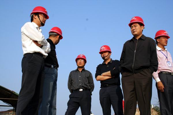 在項(xiàng)目部會(huì)議室,項(xiàng)目部就該項(xiàng)目的建設(shè)情況向戴總一行進(jìn)行了匯報(bào)。戴良軍副總和李有貴部長向路橋集團(tuán)公司傳達(dá)了建工集團(tuán)就項(xiàng)目建設(shè)的幾點(diǎn)意見,并對項(xiàng)目施工提出了更高的要求。