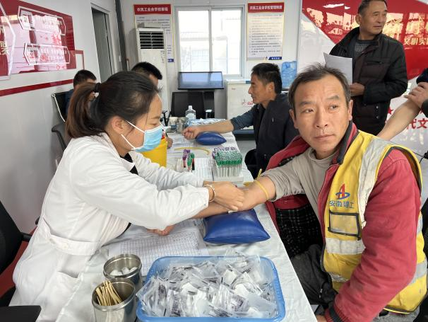 11月28日清晨,安徽省建設建材工會赴潭沖河家園項目開展農民工免費體檢活動。安徽省建設建材工會(廳文明辦)四級調研員邱亮一行出席活動。