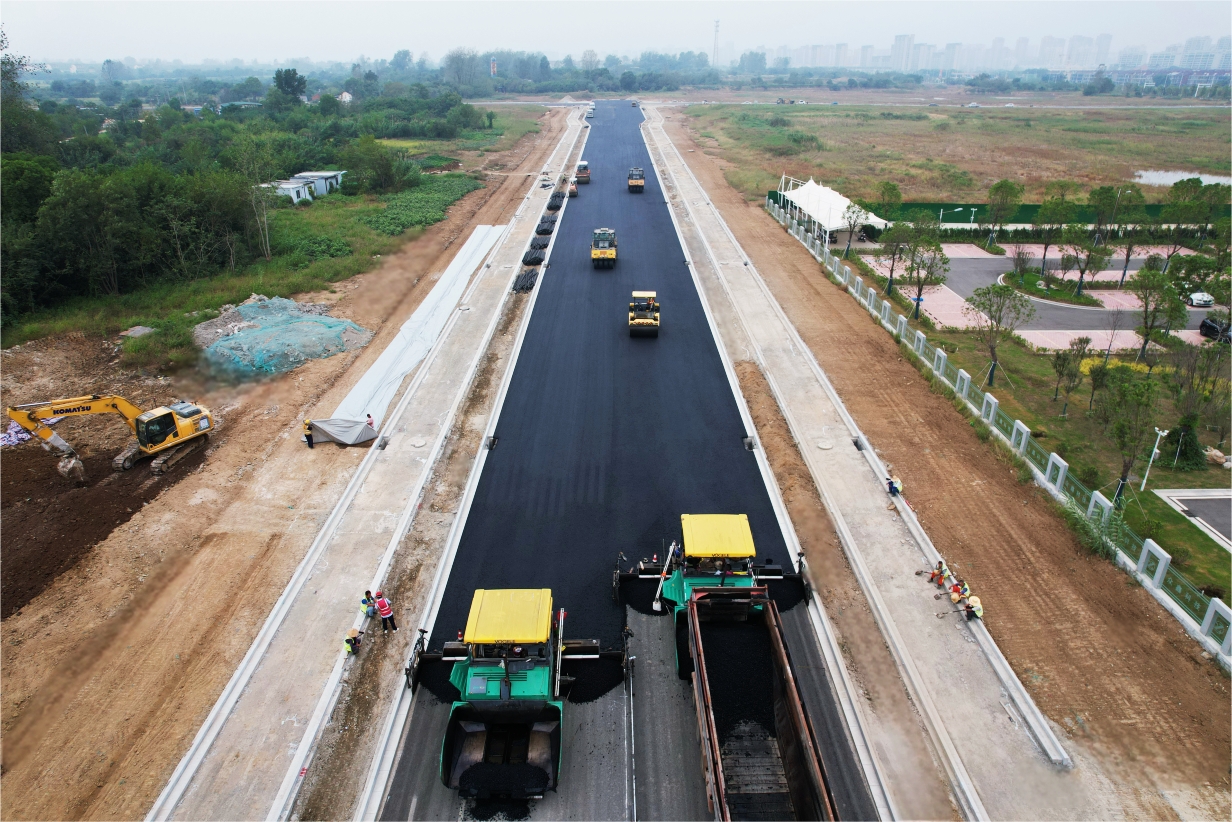 目前,主車道第一層瀝青鋪設工作已圓滿完成,為整個項目的后續建設奠定了堅實的基礎。